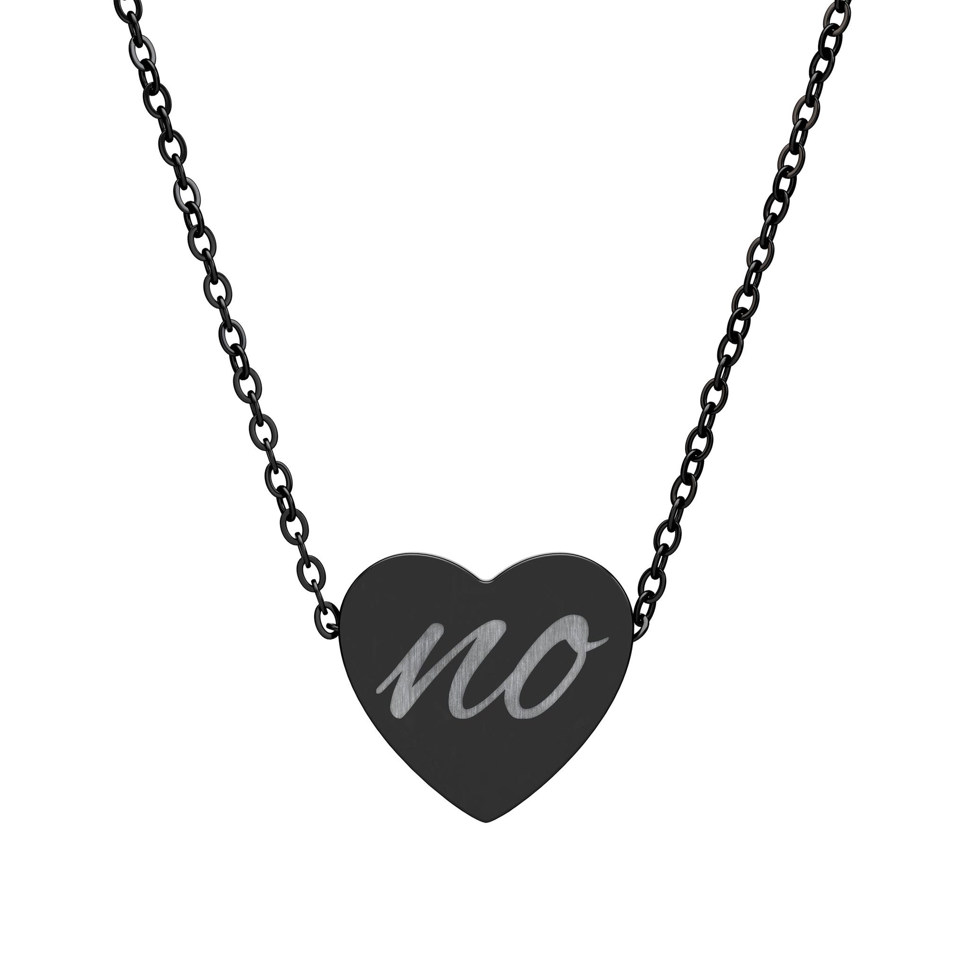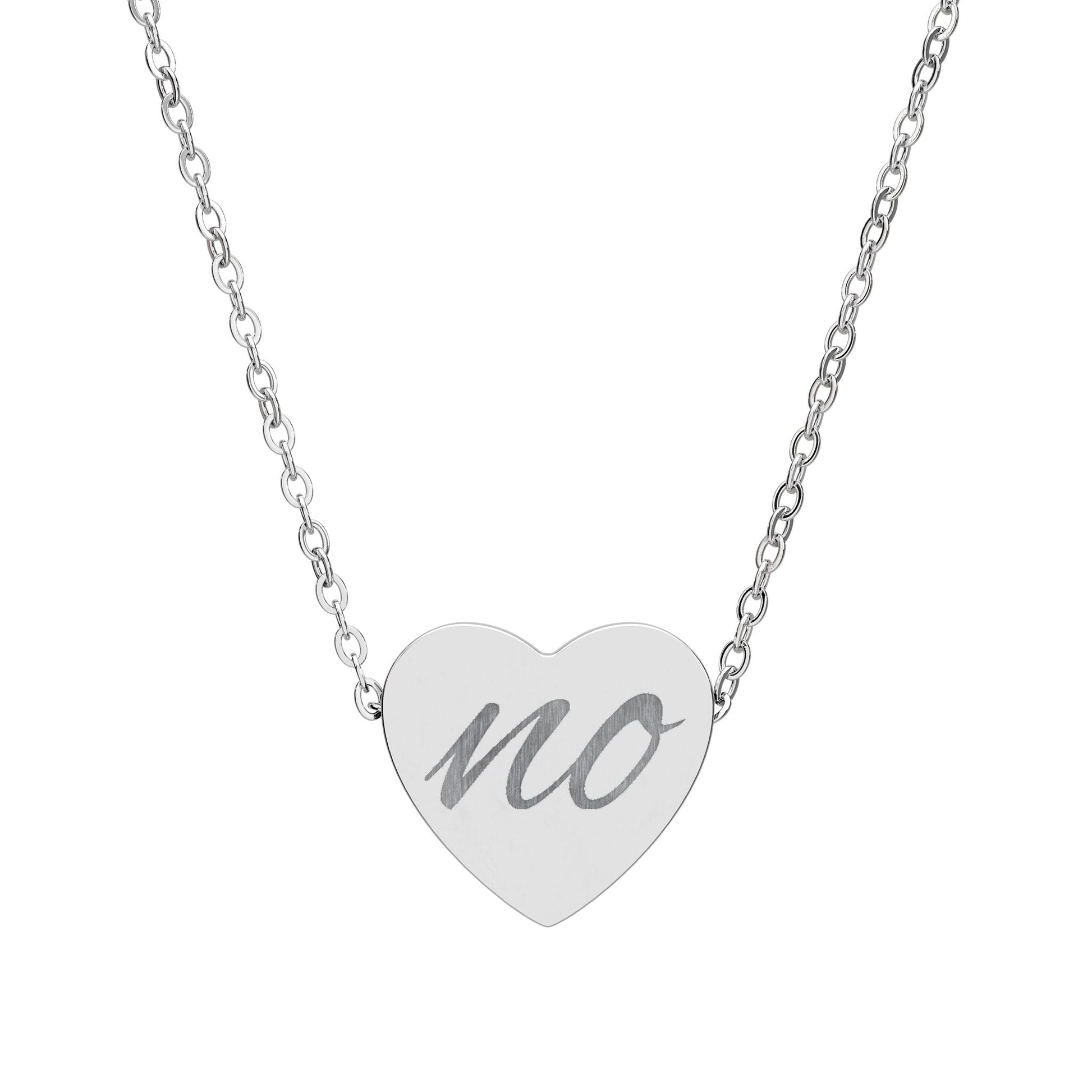 Engraved 'no' Heart Necklace — Minimalist Message Pendant